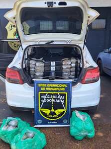 Os ocupantes informaram que a carga havia sido embarcada em Coronel Sapucaia e teria como destino o estado de São Paulo. Após a pesagem, a droga totalizou 107 quilos de maconha e 29 quilos de skunk.