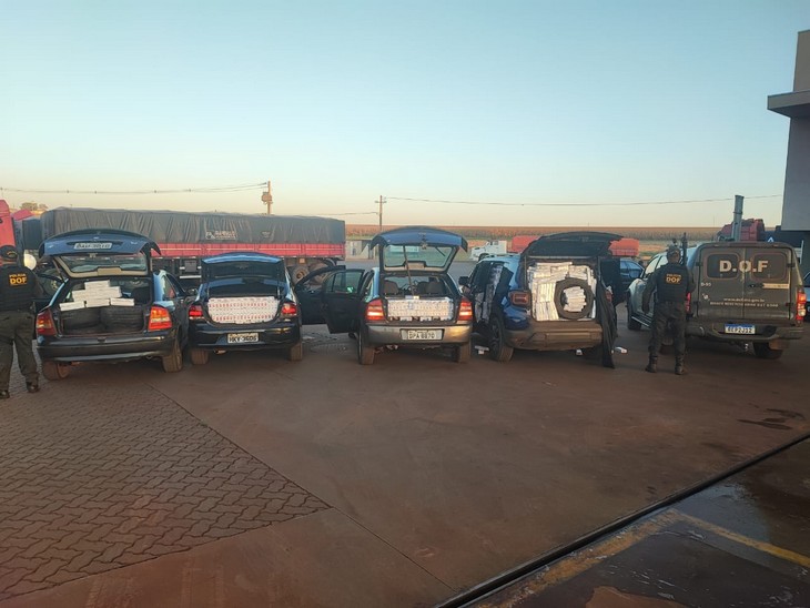 Ao todo foram apreendidos 5.650 pacotes de cigarro e 35 pneus. Condutor e passageiro do Voyage, juntamente com o veículo e os 1.350 pacotes de cigarros foram entregues da Polícia Federal de Dourados. Os demais veículos e materiais apreendidos foram entregues na Receita Federal de Ponta Porã. O prejuízo estimado ao crime foi de 437 mil reais.