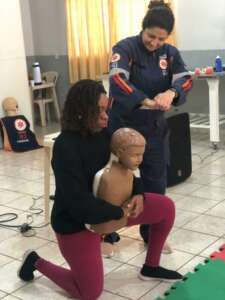 Vigente no país desde 2018, a Lei completou cinco anos no dia 4 de outubro. “O município de Dourados é o primeiro no estado do MS a aprovar a Lei que em dezembro próximo entra em vigor. A Lei visa garantir que os professores e colaboradores de creches, escolas, centros de recreação infantil, estejam capacitados em Primeiros Socorros e assim, agir em casos de urgências, garantindo o atendimento básico até a chegada de um suporte avançado, como por exemplo, o Samu. Diminuindo assim, os riscos e maiores fatalidades às nossas crianças”, explica a enfermeira Paula Batista Santos, que é a coordenadora do NEP Samu.