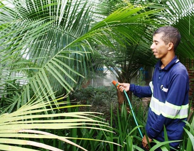 Diariamente, o jardineiro dos serviços terceirizados pela Sanesul, Claudinei Correia, mantém o local limpo, faz adubação e joga água. Desde a infância, ele lida com jardins e diz que o amor à natureza é o que garante o sucesso do paisagismo. “Meu pai era jardineiro e eu e meus três irmãos aprendemos a cuidar de um jardim, primeiro de tudo precisamos gostar das plantas, eu até converso com elas”, comentou.