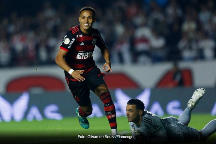 Ciente da superioridade do São Paulo, Dorival Jr também fez mudanças: Gabigol, João Gomes e Thiago Maia entraram nas vagas de Vidal, Diego e Marinho, respectivamente. E não demorou para o time rubro-negro equilibrar a partida. Aos 23 minutos, Matheusinho foi acionado por Gabigol e cruzou rasteiro para o meio da área, onde João Gomes chegou batendo de primeira, mas mandou por cima do gol, perdendo grande chance.