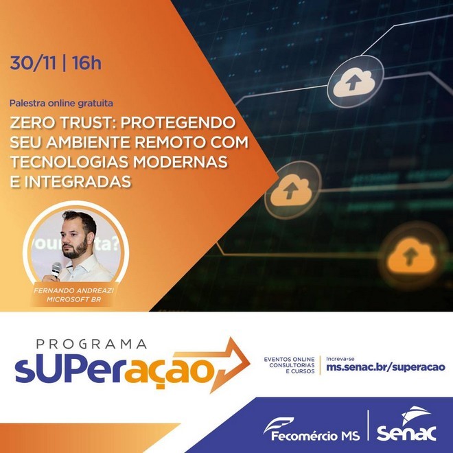 O Senac Superação conclui na próxima semana o circuito temático “Tecnologia da Informação”, que realizou uma série de painéis e cursos especiais para ajudar os empresários a compreenderem e se adaptarem à transformação digital, por meio de cases locais e nacionais, e com a presença de grandes nomes da área da tecnologia. Serão realizados dois eventos gratuitos para encerrar o tema, a palestra “Zero Trust: Protegendo seu ambiente remoto com tecnologias modernas e integradas”, na segunda-feira (30), e o curso “Protegendo as informações da sua empresa”, na terça (01) e quarta-feira (02).