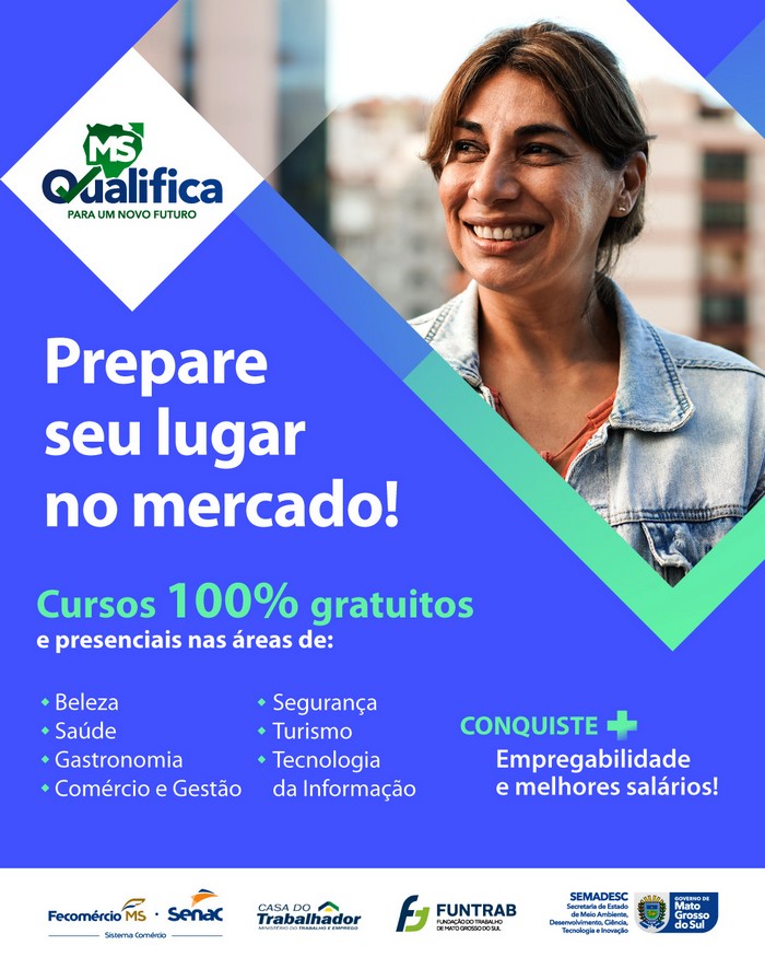 Por meio do Programa MS Qualifica, em parceria com o governo do Estado, o Senac MS oferece cerca de 50 cursos gratuitos em diversas áreas de atuação em Campo Grande e no interior do Estado. São oportunidades para qualificações variadas em vendas, áreas do comércio, estética, marketing digital, fotografia, gastronomia, entre outros.