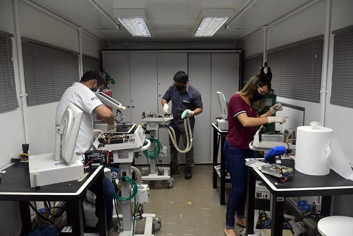 Além disso, no Estado, o Senai adaptou uma estrutura composta por unidades móveis para que o trabalho de manutenção fosse possível de forma segura para todos os colaboradores. Para isso, teve uma separação entre espaços destinados ao recebimento dos respiradores e também para higienização dos equipamentos para só depois serem encaminhados para a manutenção.