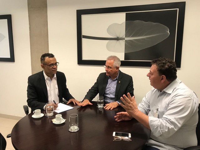 O vice-presidente da União das Câmaras de Vereadores de Mato Grosso do Sul (UCV/MS), vereador Sergio Nogueira (PSDB) e o presidente da UCV/MS, Jeovani Vieira dos Santos (PSL) se reuniram com o coordenador-geral da Escola Superior de Controle Externo (Escoex) do Tribunal de Contas de Mato Grosso do Sul (TCE-MS), Ben-Hur Ferreira, para programar uma capacitação dos vereadores do estado nos dias 15 a 17 de agosto.