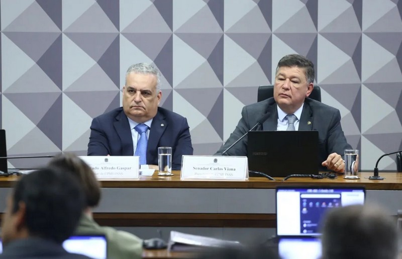 O relator da CPMI, deputado Alfredo Gaspar (União- AL), e o presidente da comissão, senador Carlos Viana (Podemos-MG) • Vinicius Loures/Câmara dos Deputados