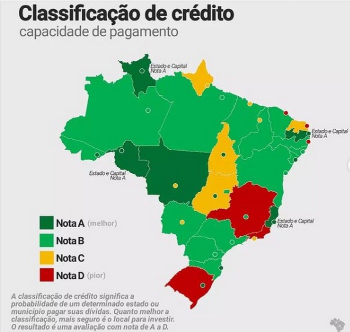 O indicador “CAPAG’ foi criado pelo Tesouro Nacional para avaliar as condições financeiras de estados e municípios, verificar se há equilíbrio nos parâmetros de receitas e despesas. As notas “A” e “B” permitem a contratação de empréstimos a juros baixos e com garantias da União. Já as notas “C” e “D” indicam “alto risco” e tornam estados e municípios inelegíveis para operações de crédito.
