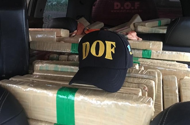 Na madrugada desta segunda-feira, 13, policiais do Departamento de Operações de Fronteira (DOF) apreenderam um veículo Pajero Dakar de cor prata, com registro de Roubo/Furto em Brasília (DF), no dia 29 de maio de 2015, carregado com vários volumes de maconha, com peso total de mil e vinte quilos.