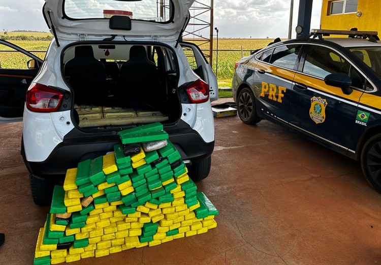 A equipe de policiais rodoviários federais fiscalizava em frente à Unidade Operacional da PRF, no KM 216 da BR 163, quando abordou o condutor do veículo Renault Kwid. O homem deu respostas imprecisas aos policiais quando questionado sobre o motivo da viagem e de onde estava vindo.