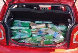 Ao abrir o porta-malas, a equipe flagrou os tabletes da droga. O carro estava carregado com 194 tabletes. Ao observar os sinais de identificação do UP, os policiais descobriram que as placas aparentes eram falsas. Dentro do automóvel também foram encontradas outras duas placas de identificação.