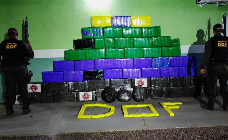 Policiais militares do DOF (Departamento de Operações de Fronteira) recuperaram, na madrugada desta quinta-feira, um veículo Chevrolet Onix preto furtado em Curitiba, no dia 24 de abril deste ano. Um segundo veículo, um Fiat Uno preto, também carregado com maconha foi apreendido. Ao todo foram apreendidos 737,2 quilos de maconha e 10 quilos de skank.