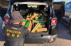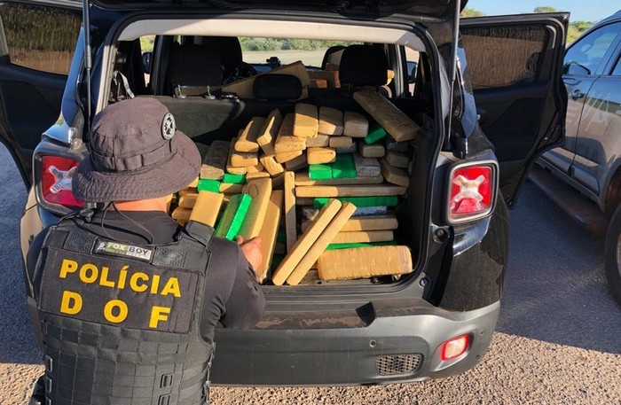 Policiais do Departamento de Operações de Fronteira (DOF) apreenderam, na manhã desta quinta-feira, 10, um veículo Jeep Renegade preto, com placas falsas, carregado com 531 volumes prensados de maconha, com peso total de 495,6 quilos.