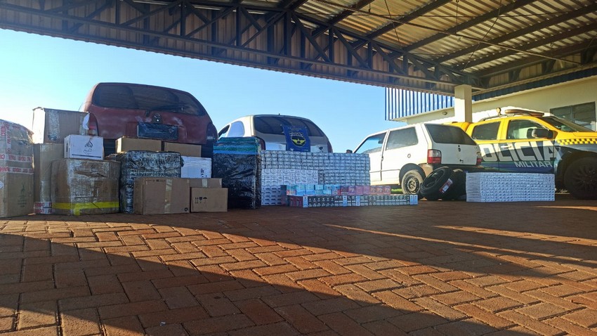 No primeiro veículo, um Fiat Uno, foram encontrados 200 pacotes de cigarros e 30 pneus, totalizando R$ 30.500,00 de prejuízo ao crime.