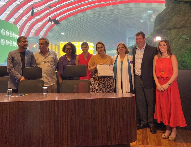 Empenhadas em tornar o setor sucroenergético um ambiente cada vez mais plural e com maior participação feminina, as unidades Santa Luzia e Eldorado da Atvos alcançaram um importante reconhecimento por parte do governo do Estado de Mato Grosso do Sul. As duas plantas agroindustriais, localizadas em Nova Alvorada do Sul e Rio Brilhante, respectivamente, receberam o Selo Social “Empresa Amiga da Mulher”, em solenidade realizada no Bioparque Pantanal, em Campo Grande, nesta sexta-feira (31), com a presença de autoridades como a ministra da Mulher, Cida Gonçalves; o governador do estado, Eduardo Riedel; e a primeira-dama, Mônica Riedel.