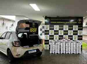 Policiais militares do DOF (Departamento de Operações de Fronteira) apreenderam, na tarde de sexta-feira (8) um Renault Sandero branco carregado com 200 pacotes de cigarros adquiridos de forma ilegal no Paraguai.