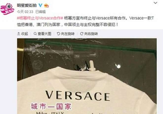 Após o caso, a embaixadora da marca na China, a famosa atriz chinesa Yang Mi, decidiu interromper sua cooperação com a Versace, acusando-a de tentar minar a integridade nacional. “A integridade territorial e a soberania da China são sagradas e invioláveis em todos os momentos”, disse o estúdio da embaixadora, Jiaxing Media, no comunicado.